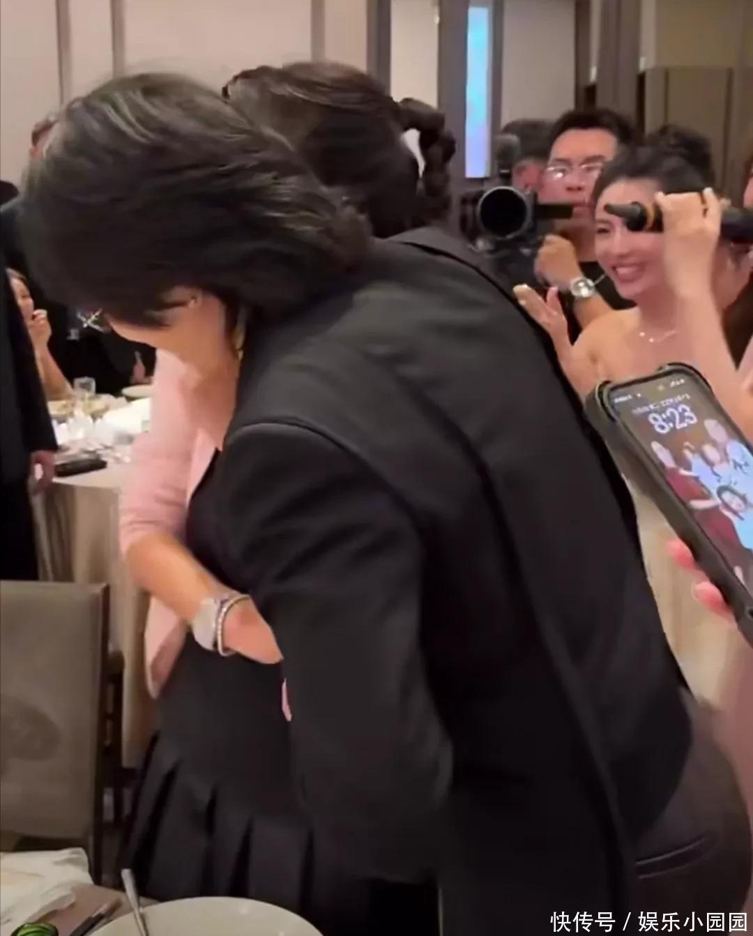 随后,萧敬腾把林有慧搂抱在怀中,画面甜蜜有爱。