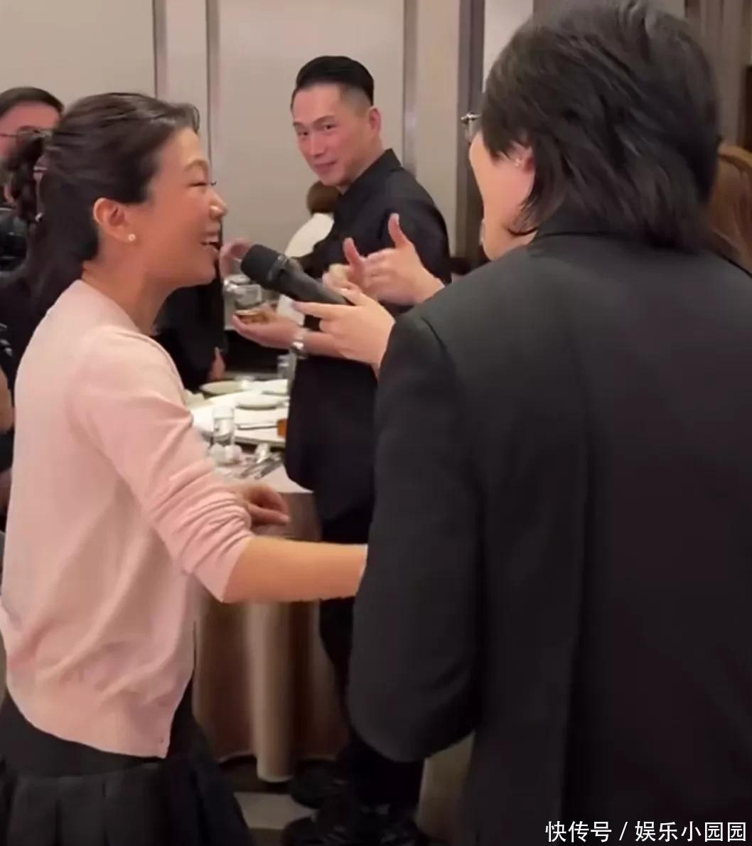 好友看见林有慧开心跟唱的时候,也直接把话筒递到林有慧的嘴边。林有慧也一点不扭捏,对着话筒开开心心的大声唱出来。而这时的萧敬腾,也不自觉靠近自家老婆,虽然萧敬腾是背对着镜头,但从他的侧脸,都能看得出来,看着老婆唱歌的他,笑的的有多灿烂。